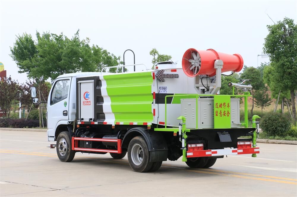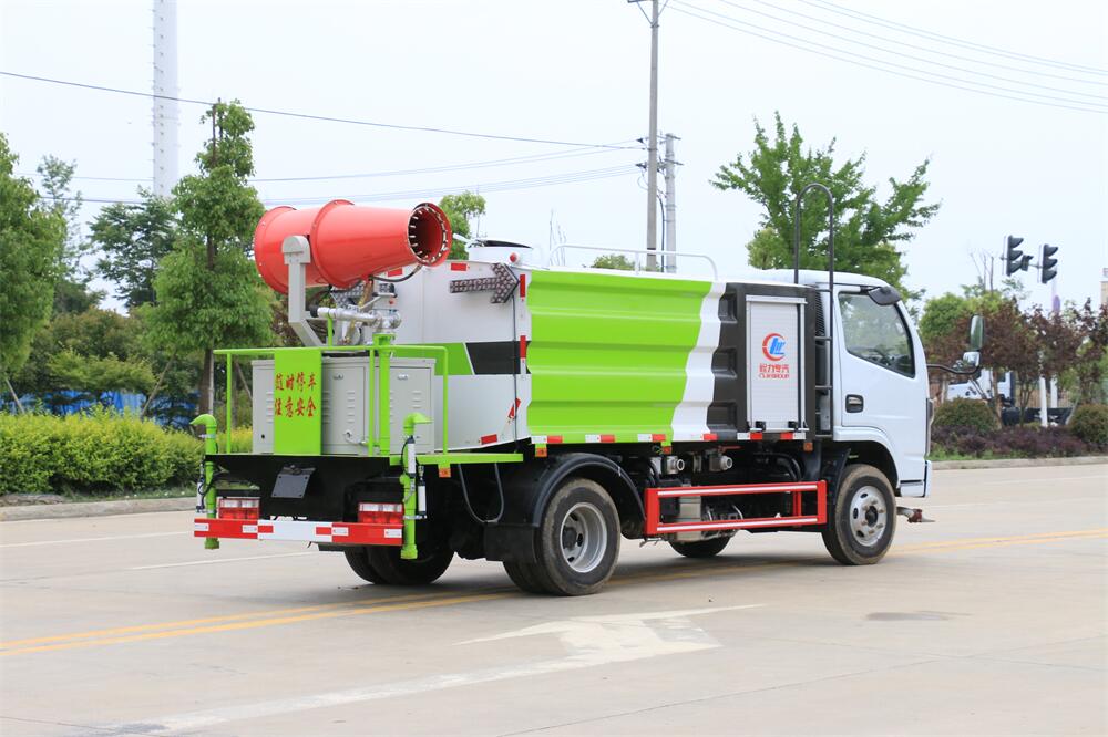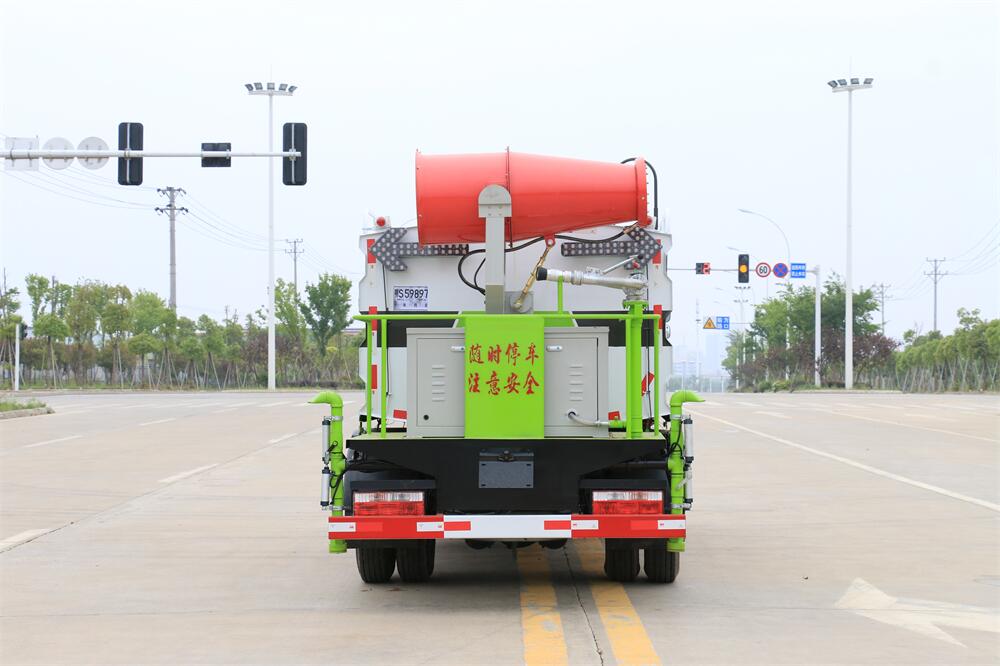 上裝配置:罐體容積為 5-7立方,選配風(fēng)送式霧炮機(jī)組射程30米、40米、50米、60米、80米、100米、120米霧炮,罐體鋼板為4mm碳鋼Q235材質(zhì),罐內(nèi)隔板具有防波作用,以減輕汽車行駛時罐體液體沖擊,罐體及整車外形尺寸按照公告。帶大功率專用灑水泵,泵可自吸自排,整車前沖、后灑、側(cè)噴、帶65消防接口,后平臺配CLW-50、CLW-60、CLW-80、CLW-100、CLW-120型風(fēng)送式霧炮機(jī)組;罐體前封頭配大功率柴油發(fā)電機(jī)組;前封頭帶水位計,后平臺主管路帶1寸澆花接口,后爬梯。帶兩根輸水管及陰陽端。罐體顏色:銀/灰/綠,罐體兩側(cè)噴“多功能抑塵車”字樣,貼反光標(biāo)示。