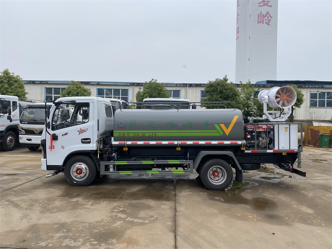 上裝配置:罐體容積 5立方,風送式霧炮機組30米,40米選擇,罐體采用國標Q235碳鋼材質,罐體厚度4MM,前后封頭5MM加厚型,罐體內雙層隔板具有防波蕩作用,以減輕汽車行駛時罐內液體沖擊;灑水車整車及外形尺寸嚴格按照**機動車公告制作而成;裝配大功率專用灑水泵,前沖、后灑、側噴、后平臺帶綠化灑水炮,灑水炮可全方位旋轉,可連續調成直沖狀、大雨、小雨、毛毛雨;配消防接口,自流閥,濾網,帶自吸自排功能。前封頭帶水位計,后平臺主管路帶1寸澆花接口,后爬梯,帶1個消防接頭,帶1個自流閥,1個過濾裝置,其余標配。