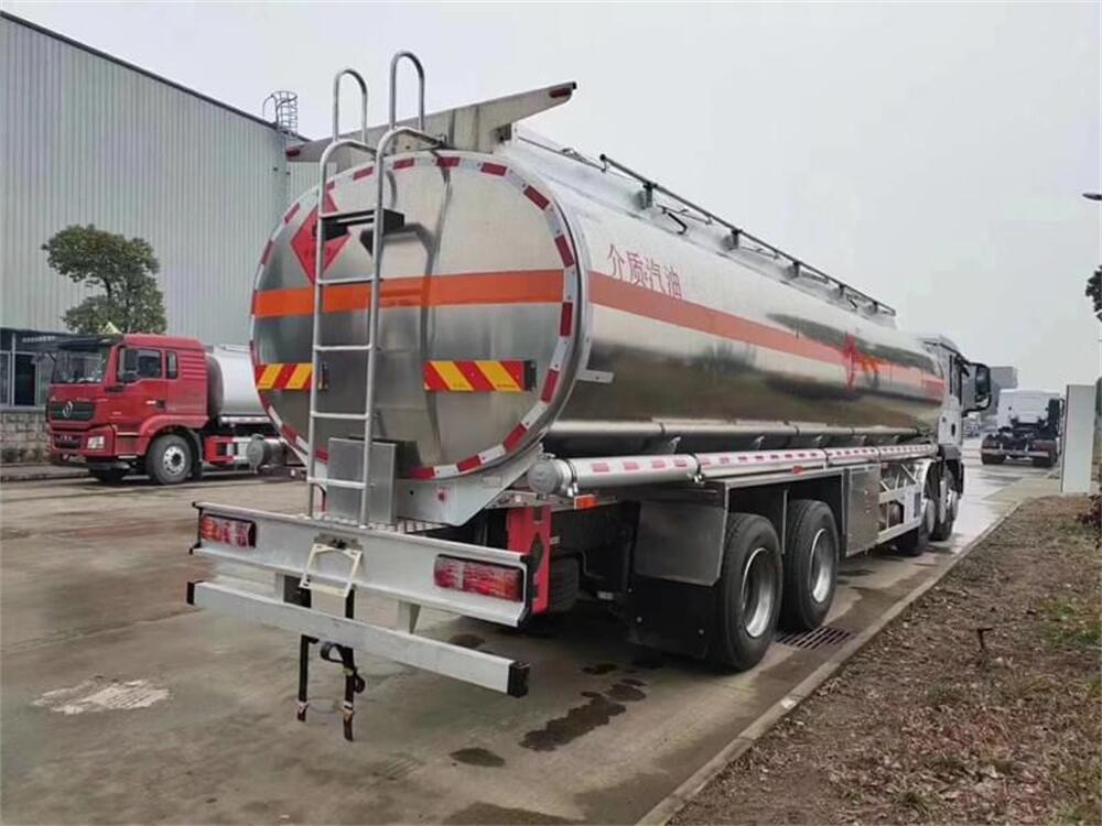 2.上裝配置:上裝采用國標(biāo)5083鋁合金板材,公告容積30.4(實(shí)際有效容積約32立方),標(biāo)配單倉,帶泵進(jìn)泵出,標(biāo)配兩個(gè)歐標(biāo)罐蓋和緊急切斷閥,帶歐標(biāo)全套下裝油系統(tǒng)(含下裝卸油閥、防溢流裝置和油氣回收裝置等),罐體頂部兩側(cè)帶折疊式升降防護(hù)欄,隨車配送兩根卸料軟管、陰陽端接頭、下裝油口轉(zhuǎn)換接頭等,其余均為廠家標(biāo)配。罐體油漆為銀粉色金屬漆,兩側(cè)及后封頭水平正中貼3M-1級橙色反光帶,反光板,貼“易燃液體”標(biāo)識,貼安全告示牌。